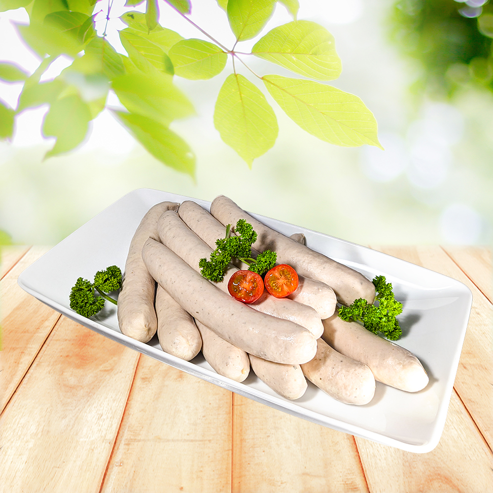 84,5% Schweinefleisch, Trinkwasser, Jodsalz (Speisesalz, Kaliumjodat), Gewürze (enthält SENF), Zucker, Dextrose, Glukosesirup, Maltodextrin, Stabilisator E450, E262; Antioxidationsmittel E300, Schweinedarm.