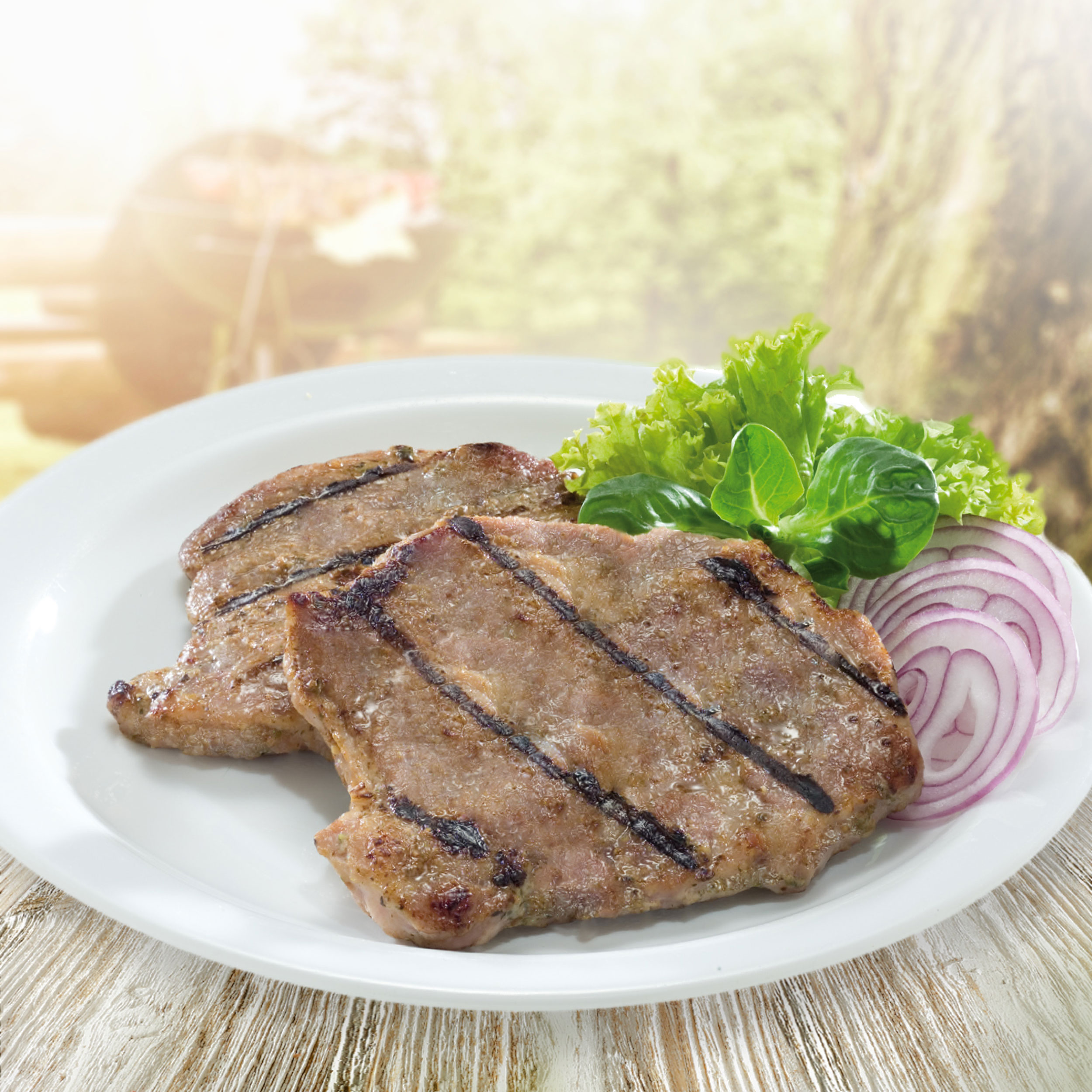 Zartes Schweinekammsteak mit Bautzner Senfmarinade.